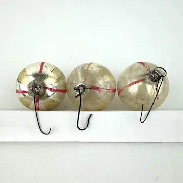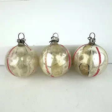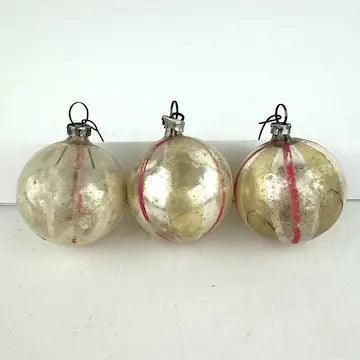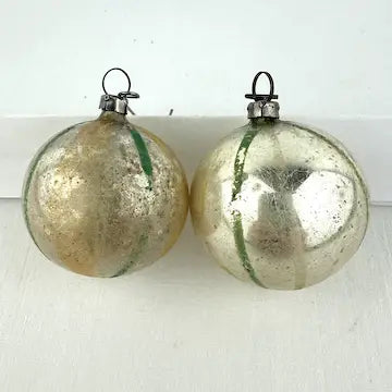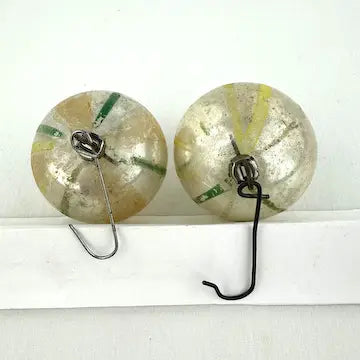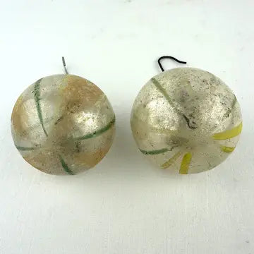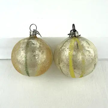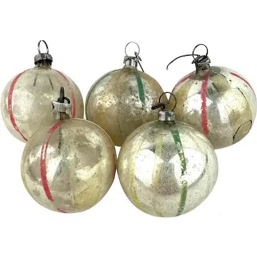 Add a touch of vintage elegance to your holiday decor with our set of 5 antique feather tree ornaments. Each bulb is carefully crafted from blown glass and adorned with painted stripes in shades of green, pink, and yellow. Perfect for adding a touch of sophistication to any tree.