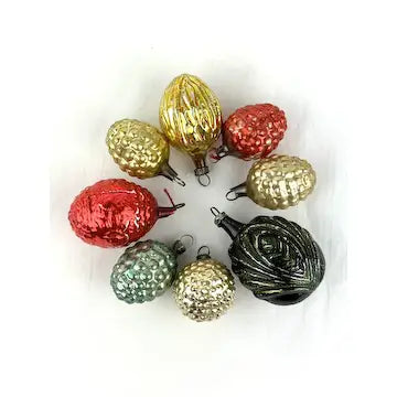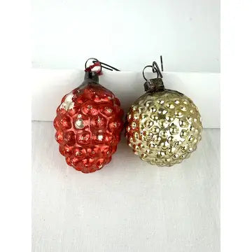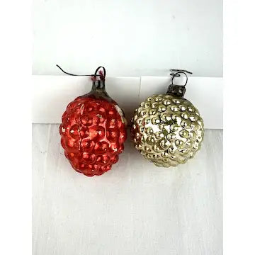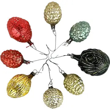 8 Tiny Antique Feather Tree Ornaments - Bumpy Fruit Etc.