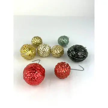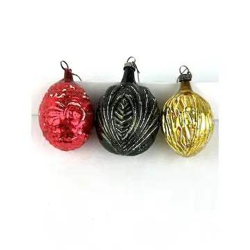 Add a touch of antique charm to your holiday décor with our set of 8 tiny feather tree ornaments. Each piece is handcrafted with a bumpy texture and boasts a shiny painted surface in black, blue, gold, or red. From 4 bunches of grapes to a walnut and an orange, these miniature fruit ornaments are perfect for adding a touch of sophistication to your Christmas tree.