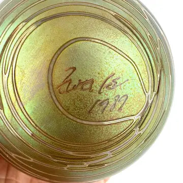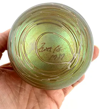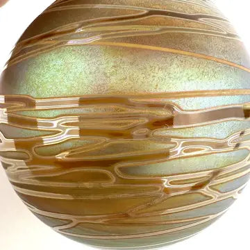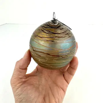 Add a unique touch to your Christmas tree with the Craig Zweifel hand blown art glass ornament. This beautiful piece, signed by the renowned artist, features a gold iridescent design that will stand out amongst your other decorations. Made with expert craftsmanship, it's the perfect addition to your holiday collection.
