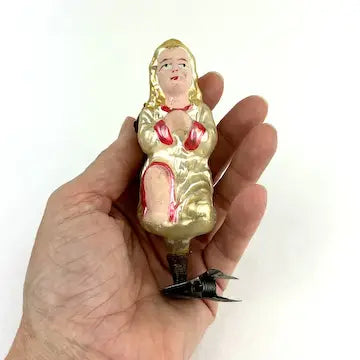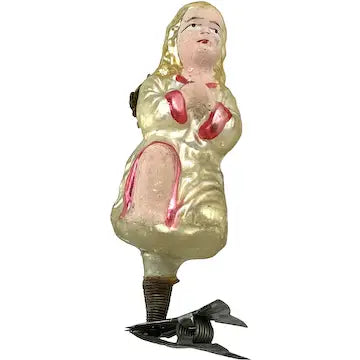 Rare Antique German Blown Glass Angel Clip Ornament