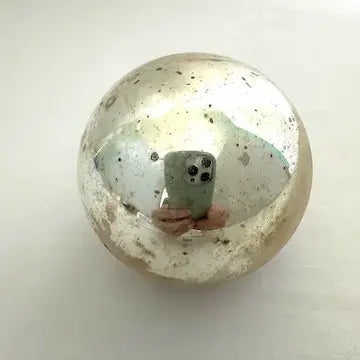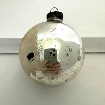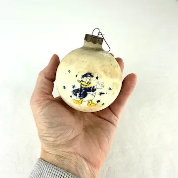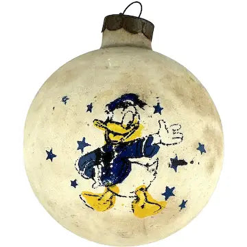 This vintage mid century Disney Donald Duck Christmas ornament is a rare and collectible find. Made of mercury glass, this round tree ornament features a classic silver tone and is the perfect addition to any holiday decoration. Add a touch of nostalgia to your Christmas tree with this iconic Disney character.