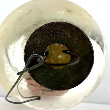 There is wear and oxidation to the surface of the ornament as shown. There are a couple black spots to the right of Donald . I believe this is paint. The cap sits slightly askew but is tight. There are no breaks or cracks in the glass. There is some rust on the cap.