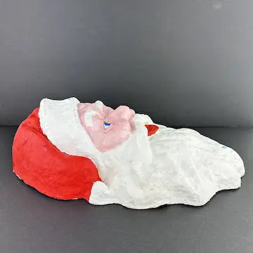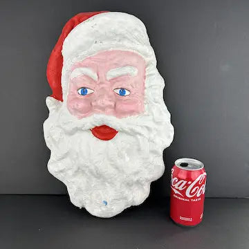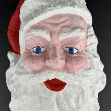 This vintage paper mache Santa wall hanging boasts a large, hand-painted Santa Claus face, making it the perfect addition to your holiday decor. Easily mounted on any wall, it adds a charming touch of nostalgia to your home.