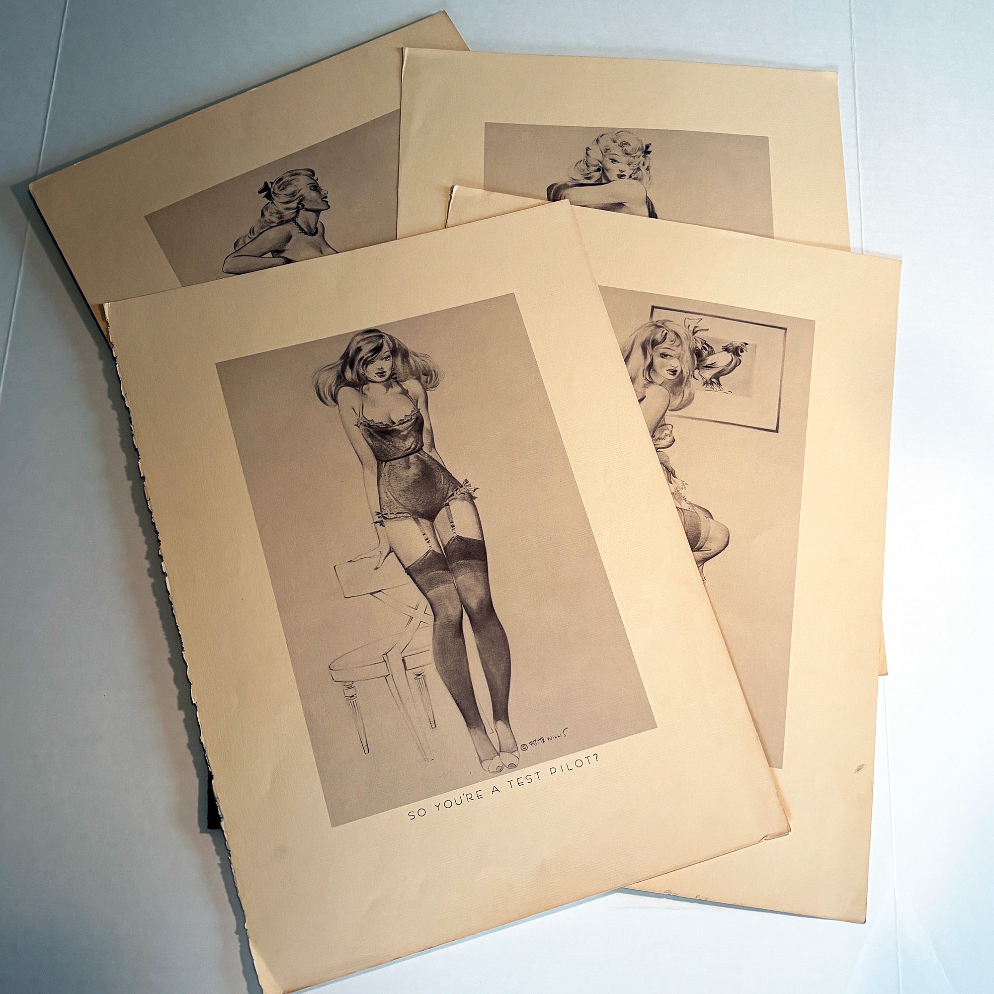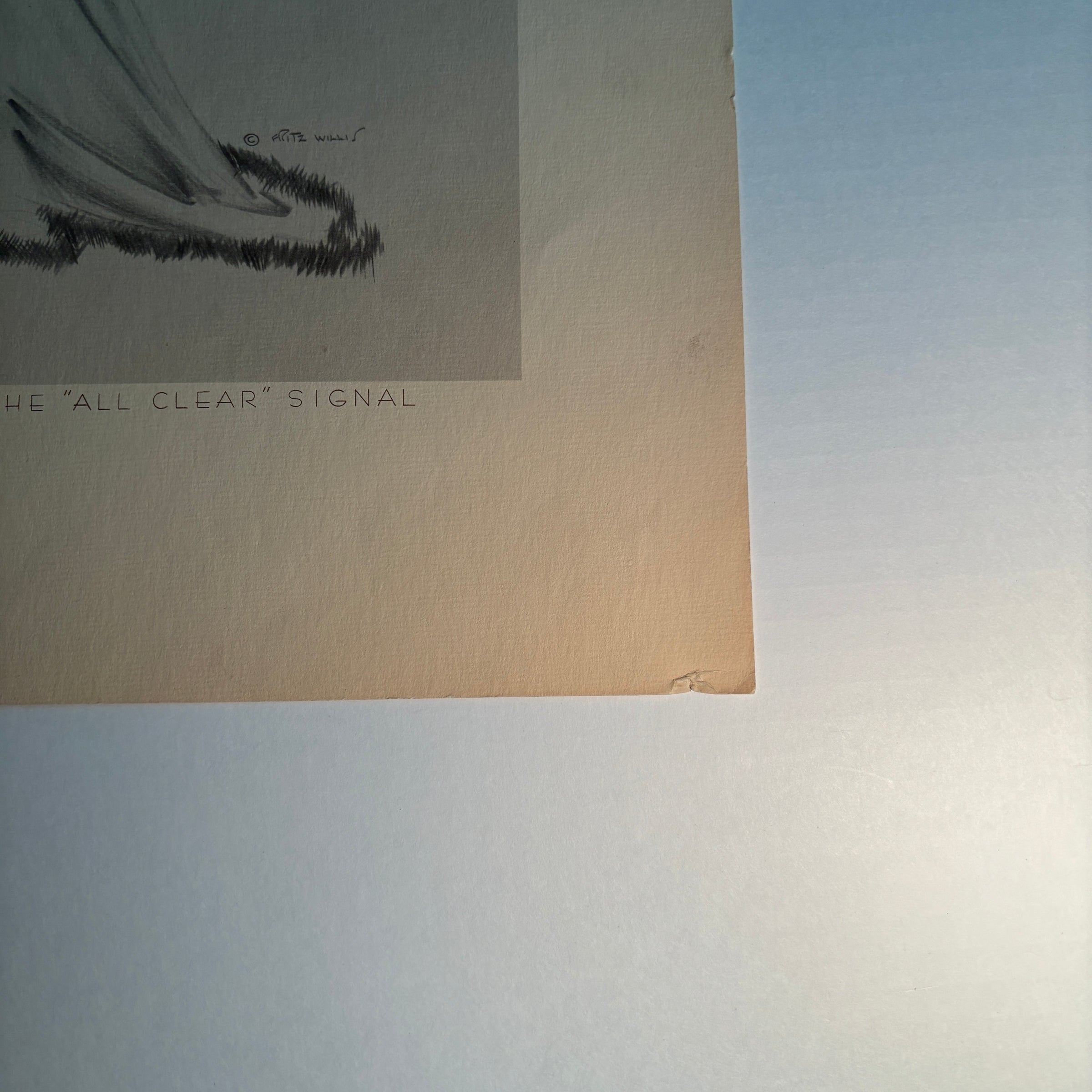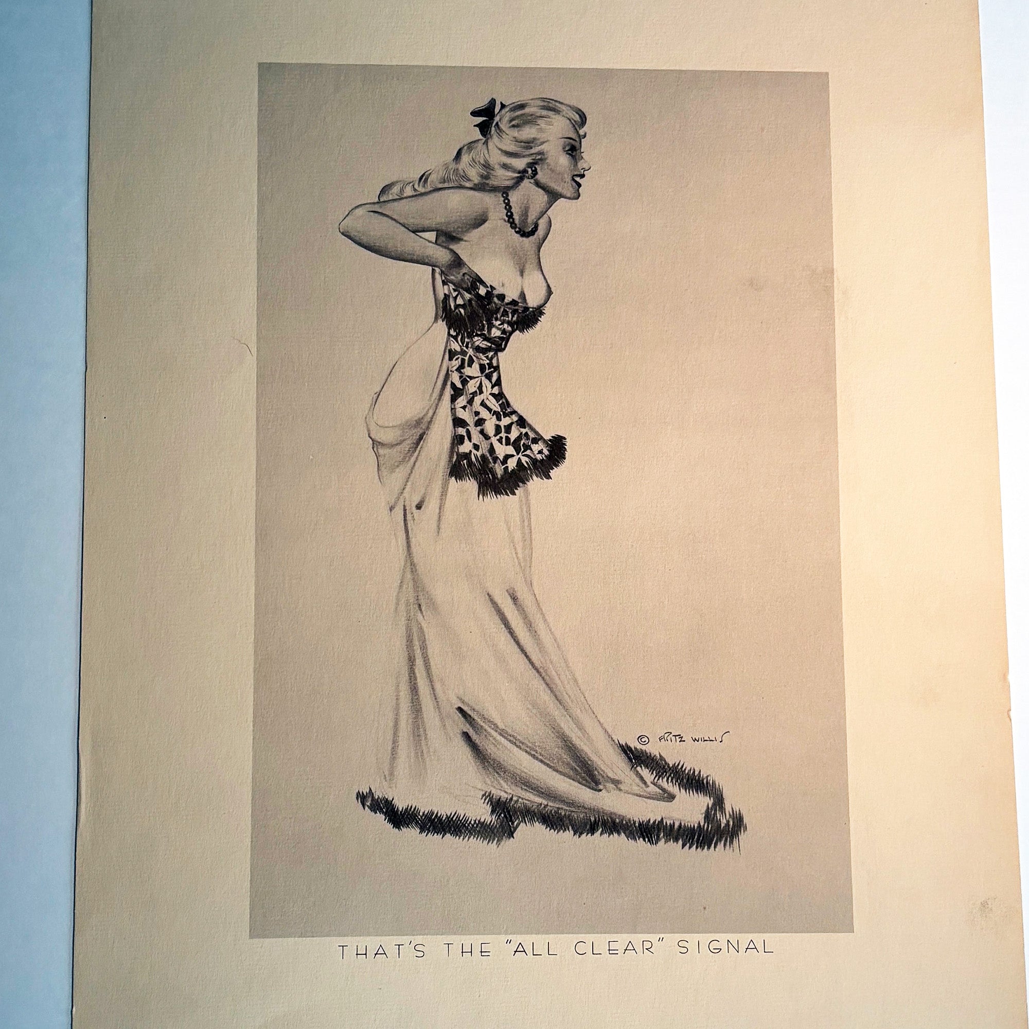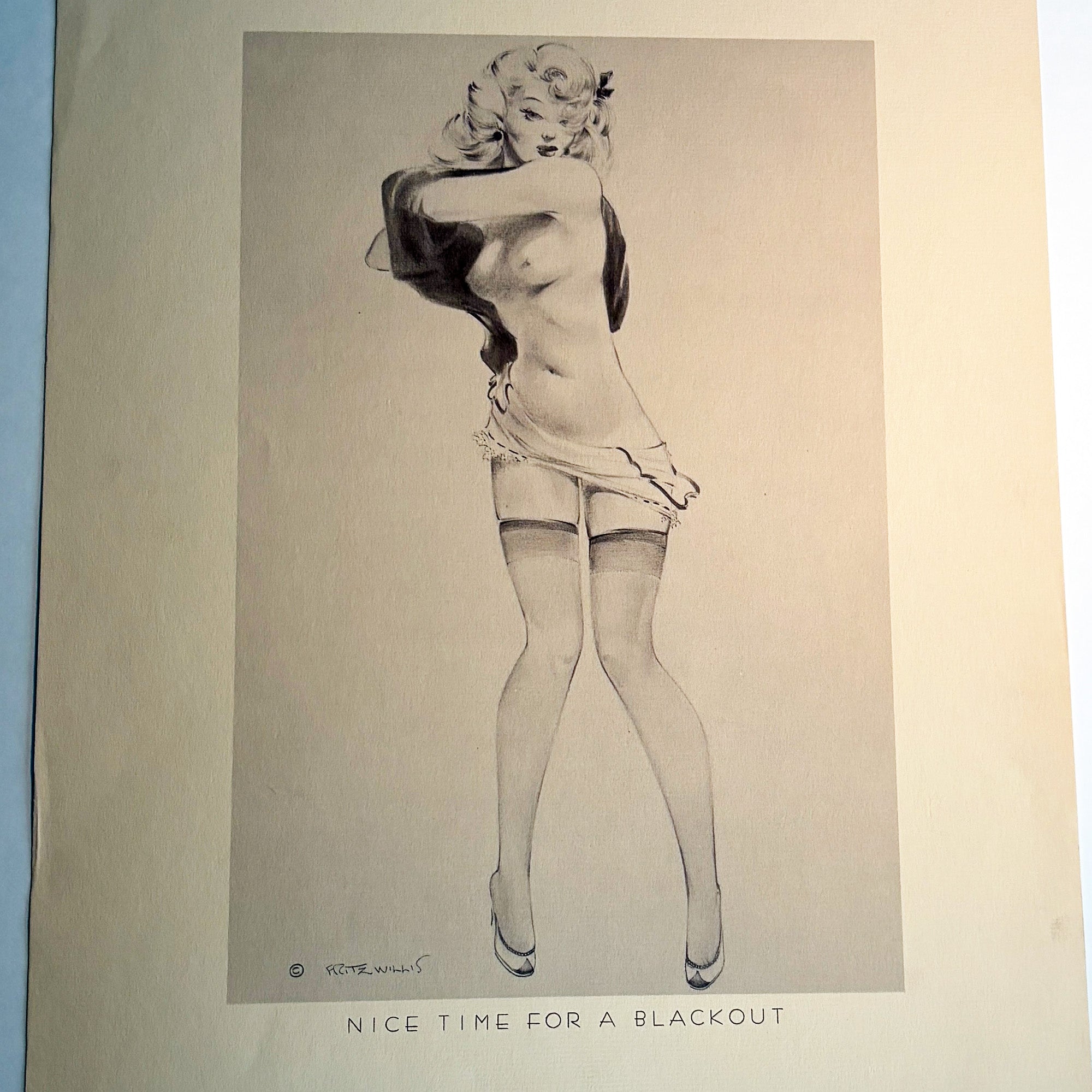 Fritz Willis (1907-1979) was known as one of the great pinup artists. This is a set of 4 lithographs of his illustrations that are printed on heavy weight art paper. These illustrations are called the “Blackout Series”. The blackout during WW2 was the practice of reducing all lights in a city so the enemy would not be able to see their target against the city lights.
