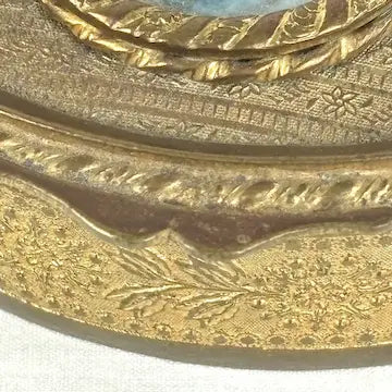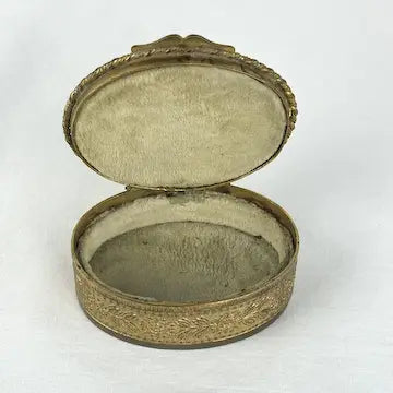 Store your small treasures in style with our victorian French bronze trinket box! Featuring an intricately detailed design and a hand painted portrait, this late 1800s piece is both elegant and unique. Plus, the velvet lined interior ensures your items will be protected. A must-have for any collector!