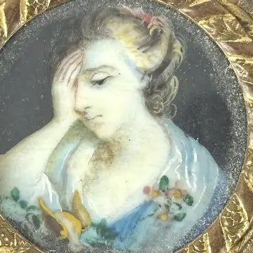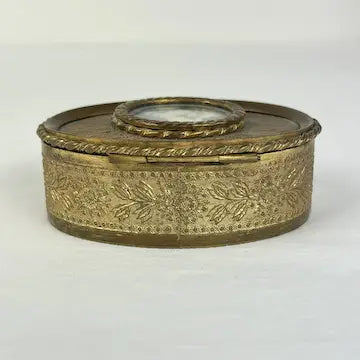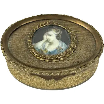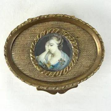 Victorian French Bronze Trinket Box With Hand Painted Portrait
