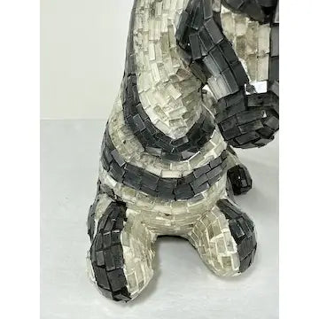 This stunning glass mosaic zebra sculpture, crafted by renowned Brazilian artist Jobi in the 1970s, showcases intricate glass mosaic work that brings this majestic animal to life. Admire the vintage charm and artistic skill of this one-of-a-kind piece.