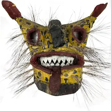 Antique Folk Art Guerrero Leather Tiger Ceremonial Mask