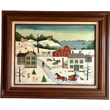 Original Folk Art Christmas Oil Painting by Linda Nelson Stocks
