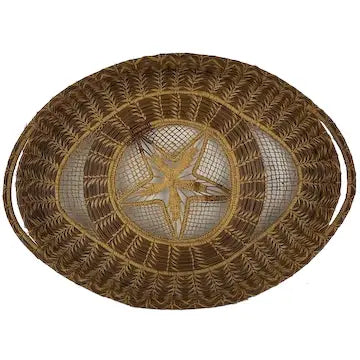 Vintage Lacey Teneriffe Stitch Pine Needle Raffia Basket Tray