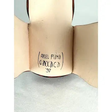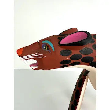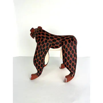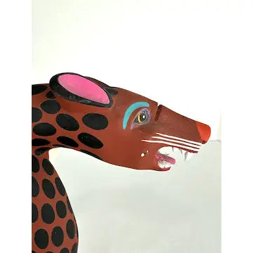 Discover the enchanting world of Mexican folk art with this vintage Ariel Playa Alebrijes leopard carving. Hand-painted with vibrant colors, this signed piece from Oaxaca, Mexico showcases intricate animal figurines. Elevate your home decor with this exclusive and timeless work of art.