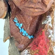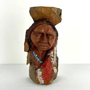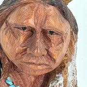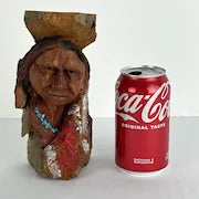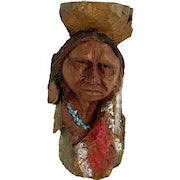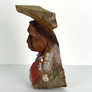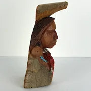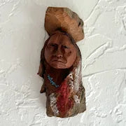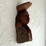 This vintage wood carving by Doug Hicks features exquisite painted and turquiose details, highlighting the intricacies of Native American art. Collectible and signed, this handcrafted folk art piece depicts a powerful Native American chief, perfect for displaying as a wall hanging.