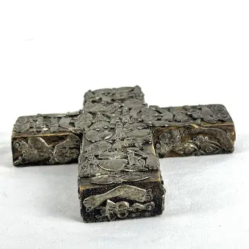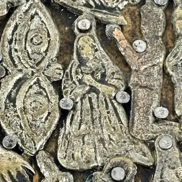 Vintage Mexican Folk Art Milagros Wood Cross