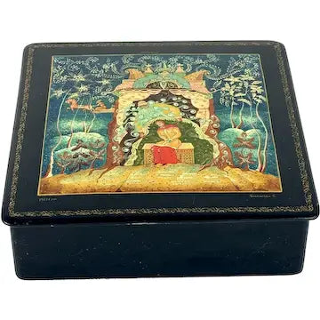 vintage Russian Fairy Tale Paper Mache Lacquer Box
