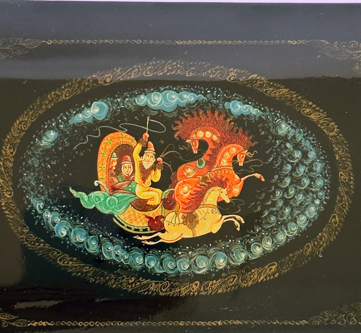 Russian Hand Painted Black Lacquer Box