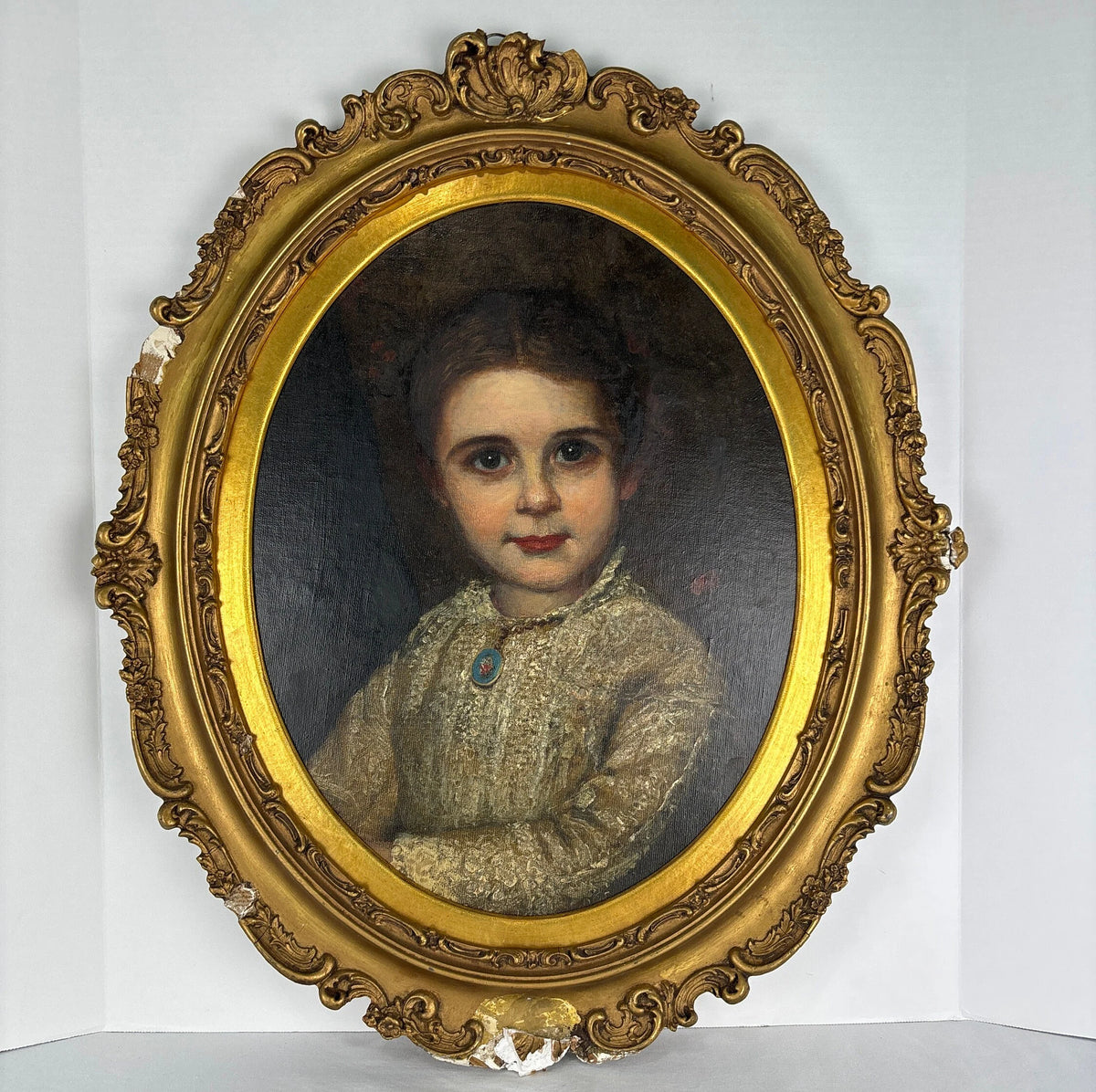 Folk Art Antique Oil Painting - Portrait of a Young Girl