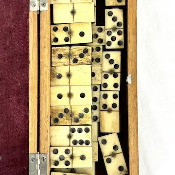 Antique Bone and Ebony Dominoes Game in Dovetailed Wood Box