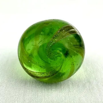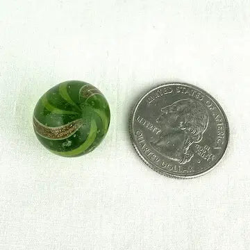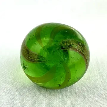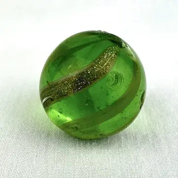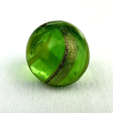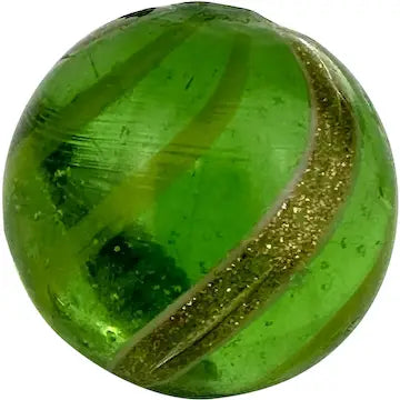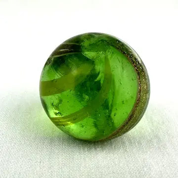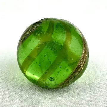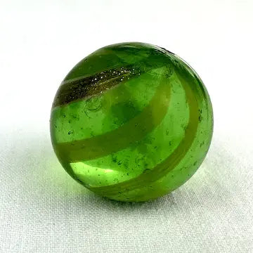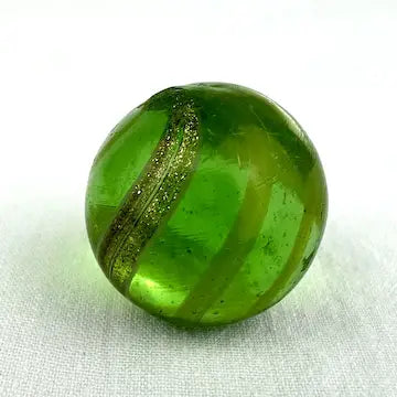 This antique German Lutz aventurine banded marble is a rare and valuable find, hand-crafted and dating back to the turn of the century. Made with exquisite attention to detail, this marble features stunning apple green bands and unique pontil marks. Add a touch of history and luxury to your collection with this beautiful marble.
