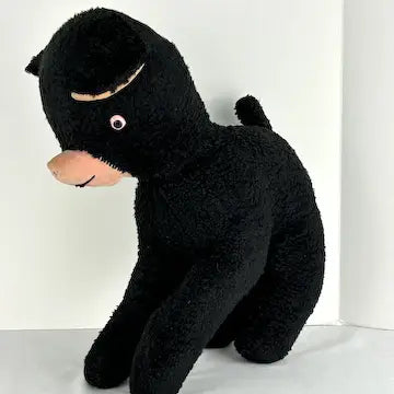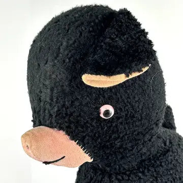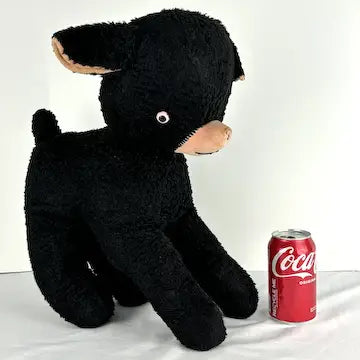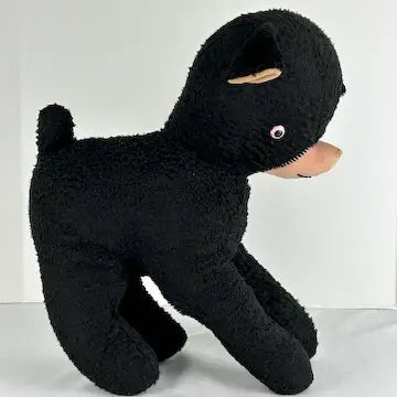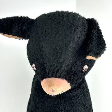 This vintage Mohair standing stuffed lamb is the perfect toy for any lamb lover! Made with soft, high-quality mohair and featuring a playful pink corduroy nose and matching pink eyes, this lamb is both cuddly and charming. Its free-standing design allows for easy display. A must-have addition to any collection!