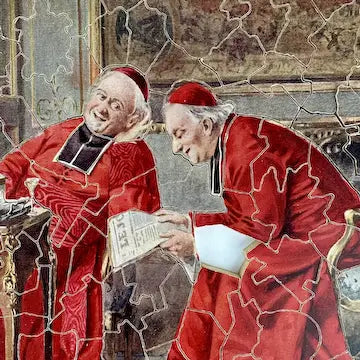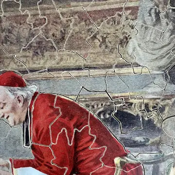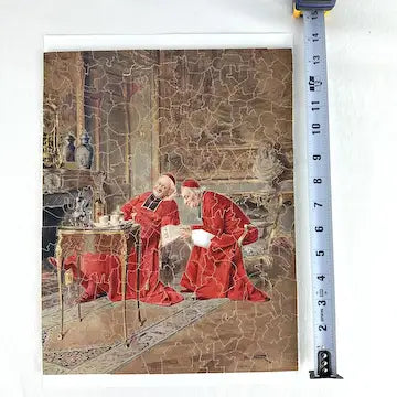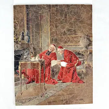 Travel back to the roaring 1920s with our vintage wood Pastime puzzle. This 257-piece jigsaw puzzle, by toy experts Parker Brothers, depicts two Cardinals enjoying lunch while catching up on the latest gossip. Made of high-quality wood, this puzzle also includes 20 unique figural pieces for an added challenge.