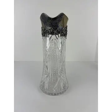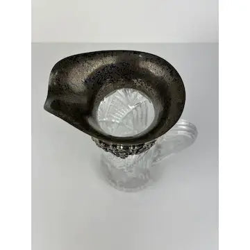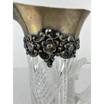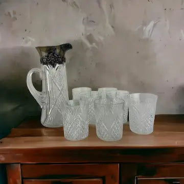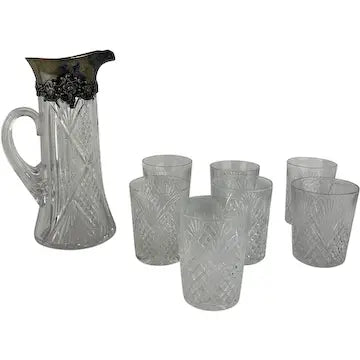 Antique Crystal Cut Silver Collared Claret Pitcher with Highball Glasses