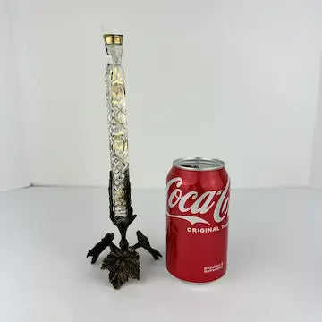 This beautiful antique perfume bottle was made in the mid 1800’s. These types of bottles were meant to hold a small amount of perfume and would usually be discarded so they are rare today. It features clear blown glass with gilt decoration on the sides and around the rim. If you look closely at the last photo you can see that the hollow portion of on the interior comes to a sharp point and retains traces of the perfume it once held.