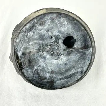 Glass is in good condition with no chips or breaks. Lid is in good condition with a lot of tarnish