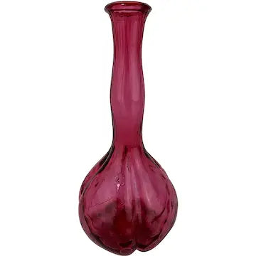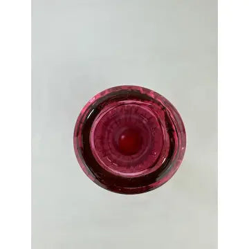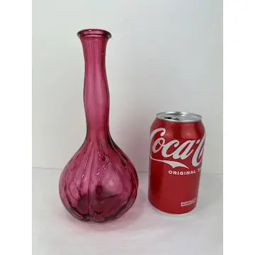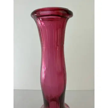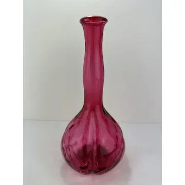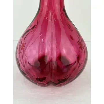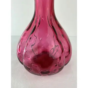This vintage Fenton cranberry bitters bottle features a ribbed and quilted design, adding a touch of mid-century style to your barware collection. The cranberry glass and diamond optic pattern create a unique and eye-catching look. Enhance your cocktail experience with this rare and collectible piece.