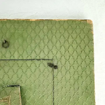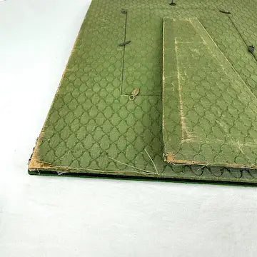 The frame exhibits some age appropriate wear and discoloration. The linen on the back is worn in spots and around the edges as shown. Even so this rare frame still presents beautifully!