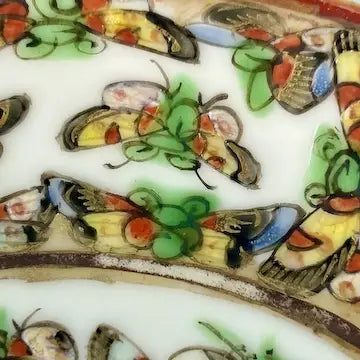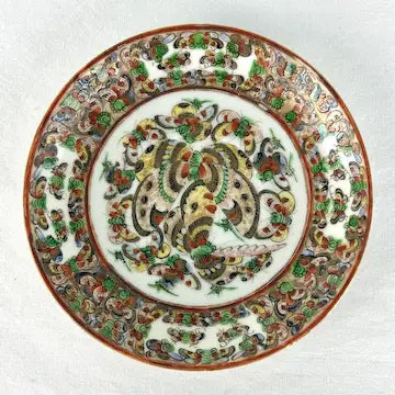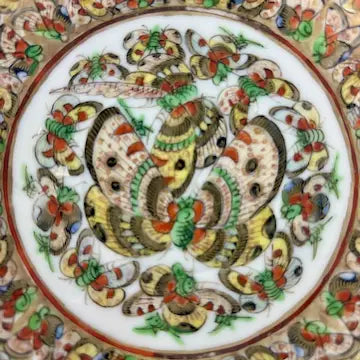 Enhance your collection with this set of 5 vintage Chinese 1000 butterfly plates. Crafted in the early 20th century, each 5 1/2" dia plate boasts a stunning butterfly pattern. Perfect as charger plates or for display, this set adds a touch of Chinese history to any table.