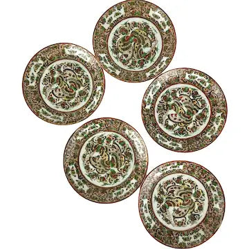 Set of 5 Early 20th Century Chinese 1000 Butterfly 5” Plates