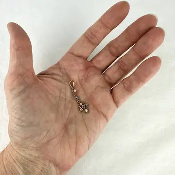 This art deco lavalier pendant features a combination of blue topaz and pearls set in 14k yellow gold. Vintage and marked E.S.Ehrlick & Sinnock Inc of New Jersey. It's a timeless accessory for anyone with a love for classic jewelry. Elevate your style with this 14k gold pendant.