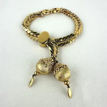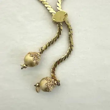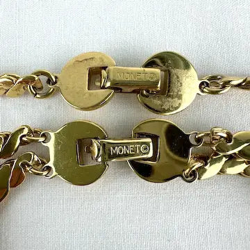 Elevate your style with our vintage Monet slide chain lariat necklace and bracelet set. Crafted in the 1960s, this demi parure features a gold tone finish and a unique slide chain design for an adjustable fit. Marked with the quality of Monet, this set is a timeless addition to any jewelry collection.