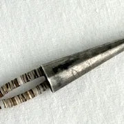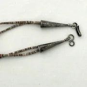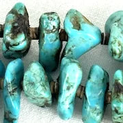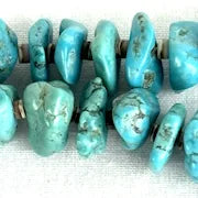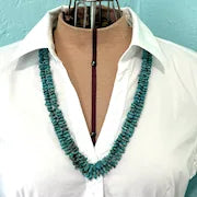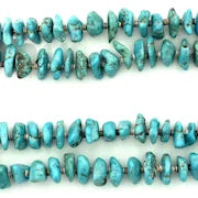 This is a vintage hand made Native American turquoise nugget necklace.  Each piece of turquoise has a heishi bead separating it from the next turquoise bead.  It is strung on a natural string and is connected with sterling silver cones and clasp.  Silver has tested positive for sterling with an acid test.