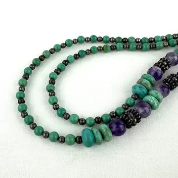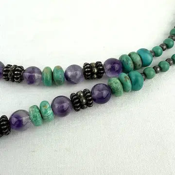 Vintage Silver Amethyst & Turquoise Necklace