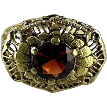 Vintage 10k Gold Filigree Garnet Ring