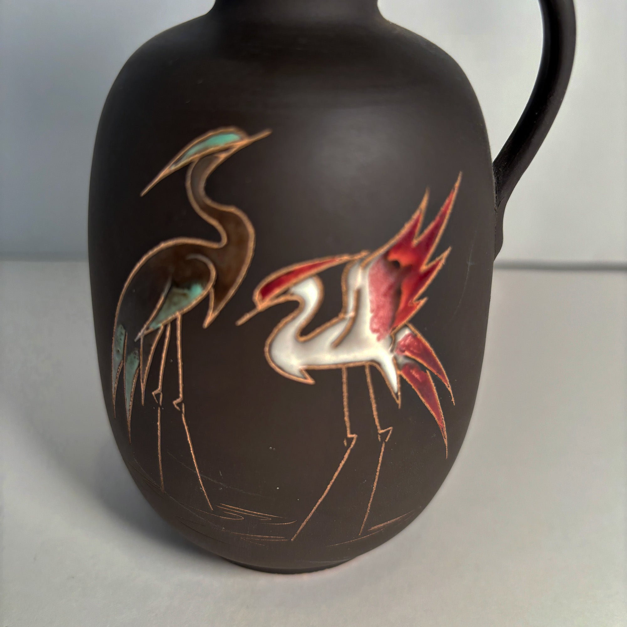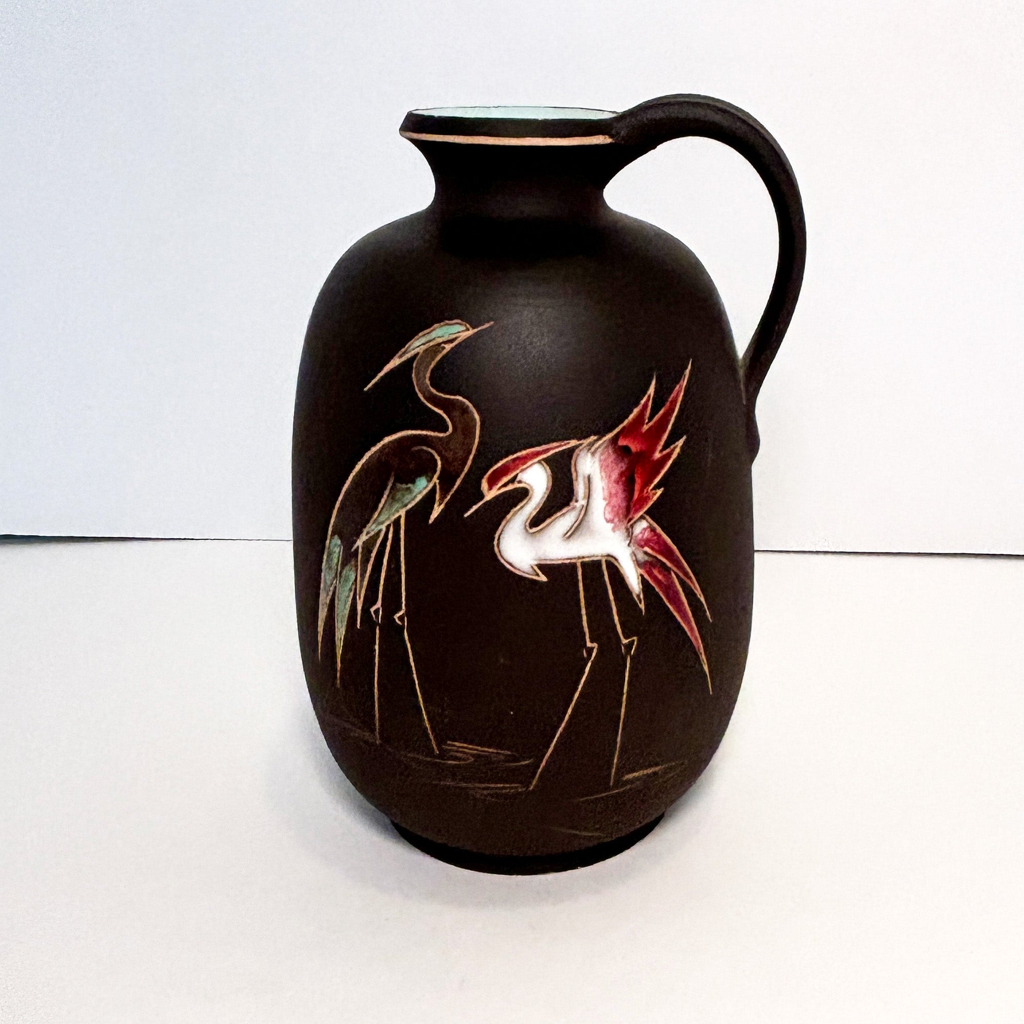 Kiechle Vintage German Studio Art Pottery Vase with Enameled Herons