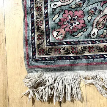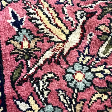 Indulge in the beauty of this large vintage Turkish Anatolian Kayseri tree of life prayer rug. Hand knotted with a cotton foundation and a luxurious wool pile, this rug features a stunning tree of life design with a bird and floral motif. The rose, teal, blue and green hues add a touch of elegance to any space.