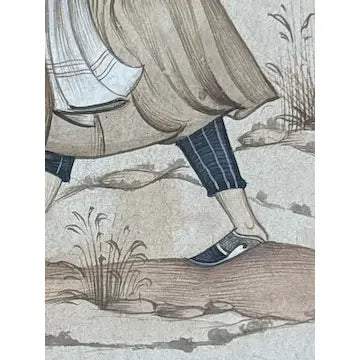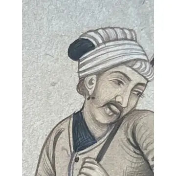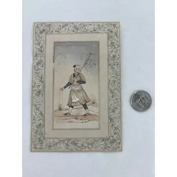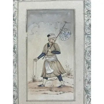 Vintage Indian School Moghul Miniature Painting of a Man Traveling by Foot