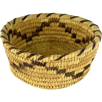Vintage Handwoven Native American Pima Basket with Zig zag Pattern