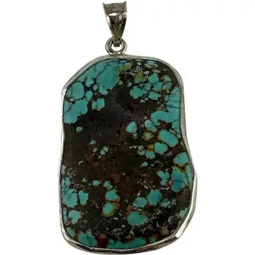 Turquoise Pendant with Matrix Signed KJ