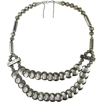 Vintage Navajo Sterling Silver Puffy Pillow Bead Necklace
