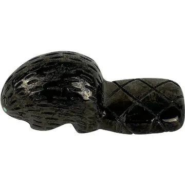 Zuni Black Fetish of a Beaver signed by Cheryl Beyuka