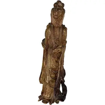 Antique Handcarved Soapstone Chinese Guanyin Figure