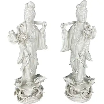 Early 20th c Blanc de Chine Porcelain pair of Deities