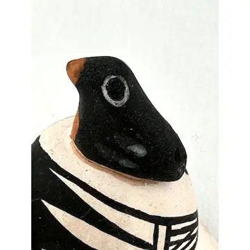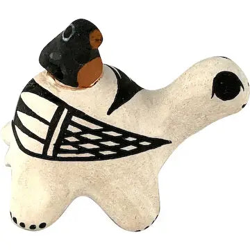 Discover the rich culture of the Native American Acoma Pueblo with this small turtle effigy. Handcrafted with polychrome and adorned with intricate geometric patterns, it serves as a miniaturized storyteller, sharing the traditions and history of its people. A unique addition to any collection.