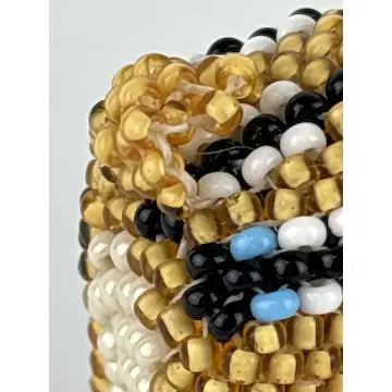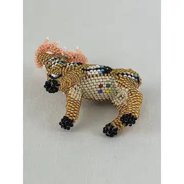 Indulge in a piece of Native American history with our vintage Zuni beaded fetish deer by Denise and Faron GChachu. Handcrafted with intricate beading and a fluorescent antler rack, this miniature brown deer boasts an elegant feather pattern on its side. Each piece is hallmarked, making it a truly exclusive addition to your collection.