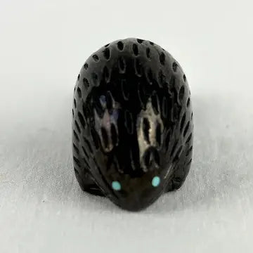 This exquisite Zuni black fetish of a beaver, hand-carved from black marble, is signed by renowned artist Cheryl Beyuka. The intricate details of its textured fur and vivid turquoise inlay make it a true collectible for those who appreciate Native American art. Its vintage nature adds to its exclusivity.