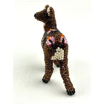 Indulge in the world of Native American artistry with our Zuni miniature beaded deer fetish. Handcrafted by the renowned artists Denise and Faron Gchachu, this vintage piece boasts intricate beaded detailing and exudes a sense of culture and tradition. A must-have for any collector of luxury and exclusivity.